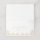 Diseño de hojas de oro y guión elegante azul marino. Personalizar con nombres de invitados y números de tabla. Se coordina con los programas de bodas de hoja de oro y otros estacionarios.