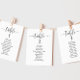 Presentamos nuestra minimalista tarjeta de boda, una combinación perfecta de elegancia y diseño moderno. Esta tarjeta, elaborada con un tipo de letra sofisticado, sirve como elemento funcional y decorativo en la decoración boda. Simplemente cuélguenlos en un espejo, una tabla o un listón para una presentación impresionante que guíe a sus invitados a sus asientos. Cada tarjeta incluye elegantemente el número de la mesa y una lista de invitados en esa mesa, lo que garantiza una disposición perfecta y hermosa para su día especial. GRACE PPW550