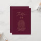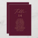Estas delicadas tarjetas gráficas con números de mesa dorados y burdeos son perfectas para un boda moderno. El romántico diseño minimalista presenta una encantadora y elegante tipografía de champán amarillo dorado sobre un fondo rojo burdeos con un aspecto limpio y sencillo. La tarjeta se imprime en la parte delantera y trasera (doble cara).