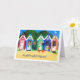Una tarjeta de cumpleaños con "feliz cumpleaños" en Galés y algunas chozas de la playa de un collage de papel pintado a mano de Judy Adamson. Puedo cambiar fácilmente el texto delantero a petición y el interior se deja en blanco para su propio mensaje.