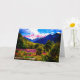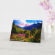 Tarjeta de las montañas del feliz cumpleaños. Un tema tranquilo y sereno. Una tarjeta idílica, positiva y de activación.