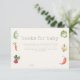 Anime a los invitados a ayudar a construir una biblioteca especial para su pequeño con esta encantadora plantilla de tarjeta "Libros para bebé". Adornada con dulces ilustraciones de vegetales en acuarela —incluyendo guisantes, zanahorias, remolachas, lechuga, maíz y pimientos—, este diseño agrega un toque fresco y juguetón a cualquier fiesta de bebé. El estilo suave y minimalista invita a los invitados a traer un libro en lugar de una tarjeta y escribir un mensaje sincero en el interior, creando recuerdos duraderos para los años venideros. Totalmente personalizable y fácil de adaptar, esta plantilla es perfecta para imprimir e incluir con las invitaciones de la fiesta.