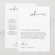 Esta carta de bienvenida a la boda y el cronograma presentan una fuente manuscrita atrevida y un diseño minimalista moderno. La simple combinación de colores en blanco y negro la convierte en la adición perfecta para cualquier evento. Edite fácilmente la mayoría de los textos de este cronograma. Haga clic en 'haga clic para personalizar aún más' en la sección de personalización para abrir el editor completo. Para agregar nuevos iconos, visite https://www.svgrepo.com/ y busque el icono que necesite. Descargue como .svg y luego arrastre y suelte en el editor de Zazzle. Cambie el color del icono en el lado derecho del editor.