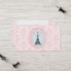 Este diseño está inspirado en París, ciudad de la moda y la luz! La famosa torre del Effel, de estilo ilustracion vintage, está decorada con una cinta rosa claro que se coloca en la parte superior para darle un toque de circunferencia. El fondo está formado por puntos de polka azul claro y blanco y damasco rosa y blanco. Por último, está enmarcada por un marco de estilo vintage con remolinos rosas. Cambie el texto del modelo introduciendo su nombre y dirección.