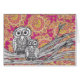 Una impresión de una original, técnicas mixtas, dibujo del búho exploró encendido para encontrar el papel. Una gran tarjeta para los amantes del búho.