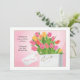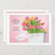 Envíe los saludos del día de fiesta con este bolso de compras blanco llenado de tulipanes de la primavera y de una etiqueta que diga "Pascua feliz".