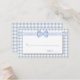 Dulce moda de país boda escolta tarjetas de lugar, hecho en un patrón de gingham color azul claro y blanco a cuadros, con un área de texto blanco. Gráficos de una cinta de gingham azul claro y blanca y una extensión de arco por la parte superior. Productos bodas a juego disponibles.