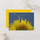 Personalizar la tarjeta de plaza del Boda Sunflower Rising cuando escribas a nombre de tu invitado y el número de la mesa en la que se sentarán en tu fiesta de compromiso, ducha de novia o recepción matrimonial. Esta tarjeta personalizado de acompañamiento botánico boda incluye una fotografía floral de una flor de girasol amarillo y un cielo azul de verano.