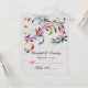 Tarjeta de lugar de boda con hoja de pergamino colorida sobre fondo retro estampado gris claro, que presenta una hoja de pergamino colorida en colores arcoíris sobre fondo floral retro estampado gris claro. Dobla la tarjeta por el centro.