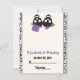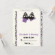 Tarjeta de lugar de boda de Halloween de cráneos elegantes púrpura, con una pareja de cráneos negros de novios y novias sobre fondo marfil y un borde de patrón de cráneos. El novio lleva un sombrero púrpura y la novia un lazo púrpura. Dobla la tarjeta por el centro. ¿Necesita ayuda o un esquema de colores diferente? ¡Simplemente haga clic en el botón de Contacto debajo del producto y pídaselo!