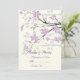 Tarjeta de lugar personalizada de boda de rama de magnolia con flores púrpuras, que presenta una hermosa rama de magnolia con flores y capullos púrpuras. Marfil, negro, gris, púrpura. Dobla la tarjeta por el centro.