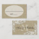Diseño floral de estilo encaje de inspiración vintage y tarjetas de asiento con información de apariencia burlap. Para cumplimentar las invitaciones, personalizar de texto según sea necesario. Añada los nombres de la novia y del novio con un monograma y una fecha de boda al dorso. No es una verdadera burlap y no un verdadero encaje.
