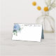 Esta tarjeta de lugar de nombre doblado se muestra en blanco básico con un acento floral azul horangea adorable y tiene nombres personalizados de ejemplo. Tiene un color azul ahumado en su interior. Personalizar este elemento y cambia los nombres y la fecha a lo que necesita con esta plantilla.