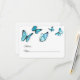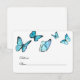 Tarjeta de lugar para boda con mariposa acuarela azul. Opción elegante para bodas de verano. Parte de una colección de bodas. Tarjeta con opción de comida.