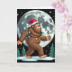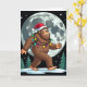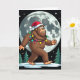 Rellene las vacaciones de alguien con una encantadora tarjeta de felicitación de Navidades con un adorable personalizado Bigfoot adornado con un 🏼 festivo de sombrero rojo de Santa 🎅. Esta adorable criatura está caminando frente a una gigantesca luna gris envuelta en brillantes luces de Navidades multicolores 🌕 🎄. Con su piel marrón, sus pies desnudos y su expresión alegre, este Pie Grande seguramente le dará una sonrisa a la cara a cualquiera. El texto de la tarjeta se coloca por casualidad sobre el fondo negro con siluetas de árboles de siempre verde en la parte inferior. Difunde alegría por las vacaciones con esta tarjeta perfecta que capta la magia de la temporada! 🎁