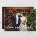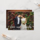 Tarjeta moderna de agradecimiento de foto de boda con escritura - Amor y agradecimiento - Escritura blanca, parte posterior de madera rústica