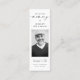 Crea un conservador significativo con nuestras tarjetas de marcadores de fotos de la simpatía del funeral de la oración conmemorativa. Estas tarjetas están diseñadas para honrar la memoria de tu ser querido y ofrecer comodidad durante este momento difícil. Cada marcador cuenta con una foto personalizada, lo que le permite mostrar un momento especial que capta su espíritu. El diseño es moderno y elegante, con un espacio para una oración o un mensaje sentidos en la parte trasera. Estas tarjetas de marcadores sirven como un homenaje reflexivo y práctico, proporcionando consuelo y apoyo a quienes las reciben. Ya sea que se utilice como un favor conmemorativo o que se distribuya en el funeral, estas tarjetas serán un recordatorio preciado de la vida de tu ser querido y el impacto que tuvieron en otros.