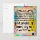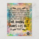 Una postal que presenta el versículo bíblico Santiago 1:25 NLT: "Pero si miras cuidadosamente en la ley perfecta que te da libertad, y si haces lo que dice y no te olvidas de lo que escuchaste, entonces Dios te bendecirá por hacerlo." Esta conveniente tarjeta de memoria se puede llevar fácilmente en una billetera, fijar en un tablón de anuncios o colocar en una mesa de noche, ofreciendo inspiración diaria y un recordatorio para vivir según la palabra de Dios.