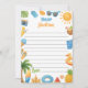 Haga recuerdos duraderos con nuestra tarjeta de notas de la cápsula del Fiesta de verano. Diseñada con alegres elementos de playa como la luz del sol, las palmeras y los toques tropicales, esta tarjeta es perfecta para que los clientes escriban notas, deseos o consejos sinceros para que su pequeña lea en el futuro. Estas tarjetas son una adición cuidadosa a su estación de cápsulas de tiempo, un significativo recuerdo de su soleada celebración, ideal para los primeros cumpleaños o fiestas con temas tropicales.
