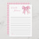 Crea recuerdos sinceros con nuestra tarjeta de mensaje de nota de la cápsula de tiempo de la curva rosa! Diseñada con suaves tonos pastel, un elegante arco rosado y delicados detalles de cinta, esta carta captura con gusto la estética de la coqueta. Perfecto para que los invitados escriban mensajes especiales, deseos o predicciones para que el invitado de honor abra en el futuro, agrega un toque sentimental y elegante a cualquier celebración de cumpleaños. ¡Un toque atemporal que hace que el recuerdo sea aún más especial!