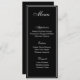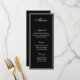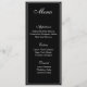 La tarjeta de menú se muestra en papel básico de la tarjeta con un elegante diseño en blanco y negro. El guión y el texto estándar se muestran en blanco. Personalizar los elementos del menú haciendo clic en el botón de edición del personalizar, busque a la derecha y busque los cuadros apropiados para cambiar a su información.