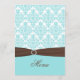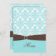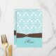 Tarjeta de menú Aqua Blue, Brown, White Damask