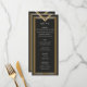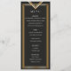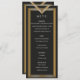 Plantilla de tarjeta de menú Art Deco dorada y negra inspirada en los años 20. ¡Totalmente personalizable con tu texto, nombres y fecha!