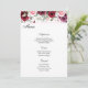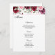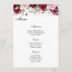 Esta tarjeta de menú boda se muestra en papel blanco básico en una bonita impresión de rosas color rosa y ciruela. Guión y texto estándar en color negro. Personalizar haciendo clic en el botón personalizar, mire a la derecha y busque los cuadros apropiados para cambiar su información. Imagen de reserva freepik.com