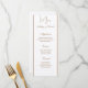 Esta tarjeta de menú boda se muestra en el papel grabado en relieve crudo en una impresión de borde en un color dorado. Guión y texto estándar en un color dorado. Personalizar haciendo clic en el botón personalizar, busque a la derecha y busque los cuadros apropiados para cambiar a su información.
