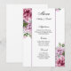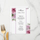 Esta tarjeta de menú boda se muestra en papel básico en una bonita impresión floral. Guión y texto estándar en color negro. Personalizar haciendo clic en el botón personalizar, mire a la derecha y busque los cuadros apropiados para cambiar su información. Imagen de reserva freepik.com