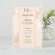 Esta tarjeta de menú boda se muestra en papel básico en una bonita impresión floral. Guión y texto estándar en tonos marrones. Personalizar haciendo clic en el botón personalizar, mire a la derecha y busque los cuadros apropiados para cambiar su información. Imagen de reserva freepik.com