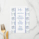 Esta tarjeta de menú boda se muestra en papel básico en una hermosa impresión floral azul. Guión y texto estándar en un color de tono azul. Personalizar haciendo clic en el botón personalizar, mire a la derecha y busque los cuadros apropiados para cambiar su información. Imagen de reserva freepik.com