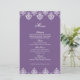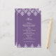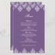 Tarjeta de menú Boda árabe morada blanca Damask