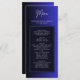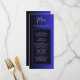 "Tarjetas de menú Boda azul" son las tarjetas utilizadas en un boda que están diseñadas con un tema de color azul. Las tarjetas de menú se colocan en cada mesa durante la recepción de la boda para informar a los clientes sobre las opciones de comida y bebida que se servirán durante la comida. Incorporar un tema de color específico, como el azul, en el diseño de estas tarjetas de menú puede ayudar a realzar la estética y la decoración general de la recepción de bodas. El azul puede evocar sentimientos de calma, elegancia y sofisticación. Dependiendo del tono de color azul que elijas, también puede representar diferentes emociones. Los tonos azules más claros transmiten una sensación de serenidad y tranquilidad, mientras que los tonos más profundos pueden evocar un ambiente más formal y refinado. En las tarjetas del menú se enumeran claramente los platos y los platos que se sirven durante la comida. Esta información podría presentarse de manera clara y organizada, posiblemente con rúbricas para diferentes cursos (aperitivos, plato principal, postres, etc.). Con una breve descripción de cada plato, los huéspedes podrán disfrutar de restricciones o preferencias dietéticas. Las tarjetas del menú se colocan en las mesas, junto con otros elementos decorativos, por lo que el color azul de las tarjetas del menú complementa el esquema de color general y la decoración de la recepción de bodas.