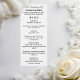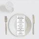 Añade un toque personal y realza el ajuste de la mesa con esta tarjeta de menú boda de texto sencillo en blanco y negro, un color clásico e intemporal que puede complementar varios temas bodas. Un diseño para parejas o anfitriones que prefieren texto plano sin elementos en el fondo para facilitar la lectura. Los textos negros que contrastan con el fondo blanco también mejoran la legibilidad. Los textos están centralizados y los tipos de letra utilizados son caligrafía, guión y sans serif. Se utilizan caligrafía y tipos de letra para mejorar el estilo, mientras que el tipo de letra sans serif se utiliza para mejorar la legibilidad y la claridad. Personalizar tecleando los nombres de la novia y del novio, día, fecha, ubicación y detalles del menú. También puede cambiar el contenido o las palabras de la herramienta de diseño, incluido el estilo de fuente, el color de fuente y el color de fondo. Por favor, compruebe la apariencia de los lados delantero y trasero después de escribir textos. Si la apariencia le resulta agradable, puede realizar su pedido ahora. Si necesita cambiar el tamaño o cambiar la posición de los textos, por favor, ajuste en la herramienta de diseño. A la novia y al novio, ¡felicitaciones por tu compromiso! Les deseamos a los dos una vida llena de amor y felicidad.