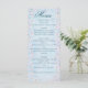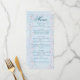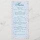 Añada un toque suave y romántico a su recepción nupcial con esta elegante carta de boda con flores de cerezo azul. El tranquilo fondo pastel con delicados acentos florales complementa con gusto la primavera, el jardín o los bodas con temática de cielo. Personalizable con sus propios nombres, fecha de boda, ubicación y elementos de menú. Perfecto para mostrar en el plato de cada huésped o en el centro de la mesa. Este menú forma parte de la colección de bodas de jardín de flores rosadas, que incluye: Invitaciones Tarjetas RSVP Guardar las fechas Gracias Tarjetas Números de tabla