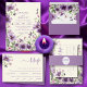 Tarjeta de menú boda con flores moradas y rosas