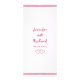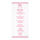 La sencilla tarjeta de menú boda para un boda está muy bien diseñada con un toque de estilo vintage. La tarjeta muestra un garabato brillante arco y tipografía dibujada a mano en magenta y blanco. También hay dos bordes en las partes superior e inferior y un patrón rayado rosa y blanco.