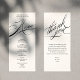 Esta elegante carta de menú presenta caligrafía y un diseño tradicional. Comparte tu menú de comida con los invitados y en lugar de dejar la parte trasera de la tarjeta en blanco, añade un mensaje de agradecimiento sincero.