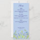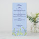 Una tarjeta de menú boda azul pálido que incluye me olvidan ahora las flores.