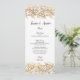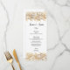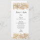 El elegante y antiguo diseño de Relieve metalizado de encaje dorado crea esta original carta vintage de bodas. Personalizable con los nombres de novias y novios y cursos y opciones para la cena. Invitación coincidente, rsvp, banda del vientre, pegatinas, etiquetas de agradecimiento y más disponibles.
