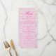 Celebre su gran día con estilo con esta elegante carta de boda de flores de cerezo. Con un romántico fondo floral rosa con delicadas flores y elegantes fuentes de escritura, este menú le da un toque suave y femenino a su mesa. Perfecto para bodas de primavera, románticas recepciones en el jardín o cualquier celebración floral. Personalizable completo: edite fácilmente nombres, fecha, ubicación y elementos de la comida. Este diseño forma parte de la colección de bodas de jardín de Pink Florals con correspondencia: Invitaciones Tarjetas RSVP Guardar las tarjetas de detalle de fechas Gracias Números de tabla de tarjetas y más.