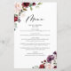 Agregue un acento floral de caída a la tabulación de su evento con esta tarjeta de menú de personalizable. Cuenta con flores color burdeos, rojas y rosa rubor con acentos folláricos. Esta carta floral es perfecta para bodas de otoño, duchas de novias, duchas para bebés y cumpleaños. Personalice agregando nombres, fecha y detalles del menú.