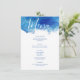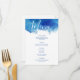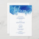 Tarjetas de menú boda impresas por personalizado con un borde de acuarela azul abstracto para coordinar con nuestra colección de marea zafiro. Personalizar el texto con las opciones del menú boda. Utilice las herramientas de diseño para editar los tipos de letra y los colores o mover el texto para que se ajuste a las selecciones de menú. Este diseño de inspiración oceánica es perfecto para una boda de destino en la playa.