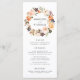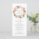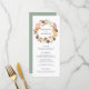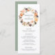Elegante carta de menú de bodas personalizada con sus nombres rodeados por una corona de flores acuarelas, suculentos y hojas en tonos rosa rosa, melocotón, naranja, crema, verde y marrón. Personalice los menús de boda personalizados agregando los detalles del menú boda a continuación. El menú cambia a un fondo verde sólido con espacio para texto y fotos. Diseñado para coordinar con nuestra colección de bodas acuarelas Rustic Fall Floral.