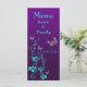 Carta floral moderna y de moda morada, azul acuático y gris plateado, con mariposas LOOK plateadas de color gris y flores azul turquesa, vinas y una invitación a la boda que se muestra a continuación. Está diseñado en una tarjeta de rack con un frente brillante y acabado mate en la parte posterior. Si desea que una tarjeta de menú en papel de invitación coincida con sus invitaciones, o si tiene alguna solicitud de artículos o cambios adicionales, envíe un correo electrónico a niteowlstudio@gmail.com con su solicitud.