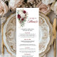 Tarjeta de menú boda floral de oro rojo intenso Bo