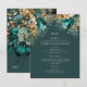 Tarjeta de menú Boda floral verde azulado Gold Lux