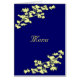 Elegante decoración floral en la tarjeta azul marino. Es agradable y útil para el Fiesta de su Boda mostrarle a sus huéspedes la carta del almuerzo/menú bufé poniéndola en la mesa de cada restaurante. Personalízalo con nombres, fecha boda, nombre del restaurante y menú, así como prefieras.