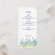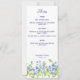 Una tarjeta de menú boda que incluye me olvidan ahora las flores.